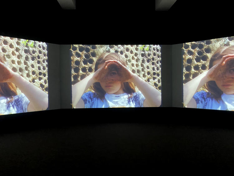 Abigail Reynold's 'A Book of Holes' is a 13 minute, three-screen video currently showing at The Exchange in Penzance as part of her survey show 'Walking A Cappella'. The quarry on Carn Marth provides the video with an anchor in the present, as early in the film we hear the drilled holes emitting a series of thumping and popping sounds as they are hit with sticks by Reynolds' family and friends. These sounds are subsequently transformed into a relentlessly pulsating EDM track, 90s ambient house style, that accompanies the video for its duration and, in Penzance, fills the gallery space with sound. It is increasingly accepted that some ancient stone monuments, including the blue stones of Stonehenge, served as lithophones, or musical instruments, but otherwise the connection between music, mining and the quarry may seem tenuous. However, just as post-industrial coal mining towns, like Sheffield, became centres of electronic music in the 1980s, in Cornwall too there was a rave scene out of which Warp records and artists like Aphex Twin and Wagon Christ emerged. Famously, in fact, John Peel's 'Sound of the Suburbs' features an interview with a very young Richard James and Luke Vibert in Gwennap Pit, a mere stone's throw from Carn Marth. This should not be a surprise because James, or Aphex Twin, grew up and made his first recordings in Lanner, the village on the outskirts of Redruth, at the foot of Carn Marth.